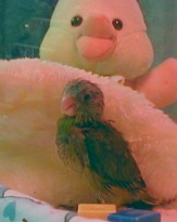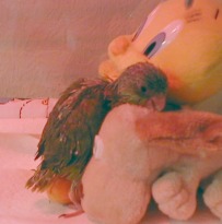 I know I look a little rough, but I don't even have all of my little feathers yet. I sure do love my little snuggle buddy Aunt Kaye gave me.
