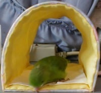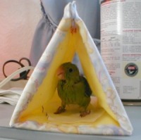 Check out the little sleepy tent and carry pouch Mom made for me. They