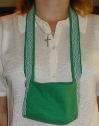 Here is a picture of Mom wearing the carry pouch around her neck.